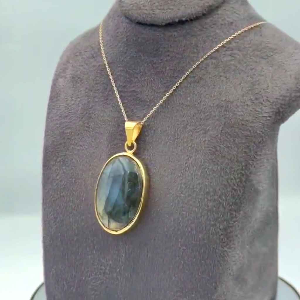 Labradorite Stone Necklace with the verse engraved on the inner side in gold