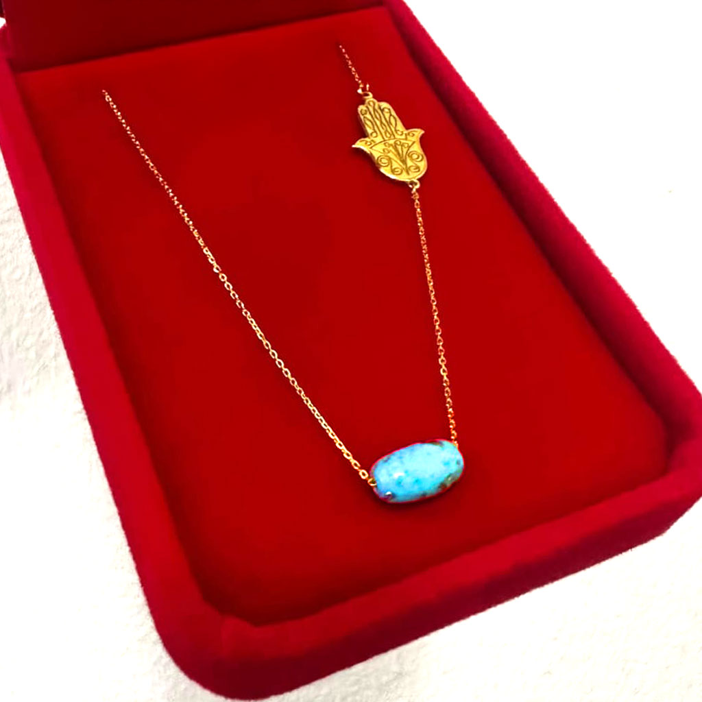 A symbol of protection and beauty — Turquoise paired with Fatima’s Hand.