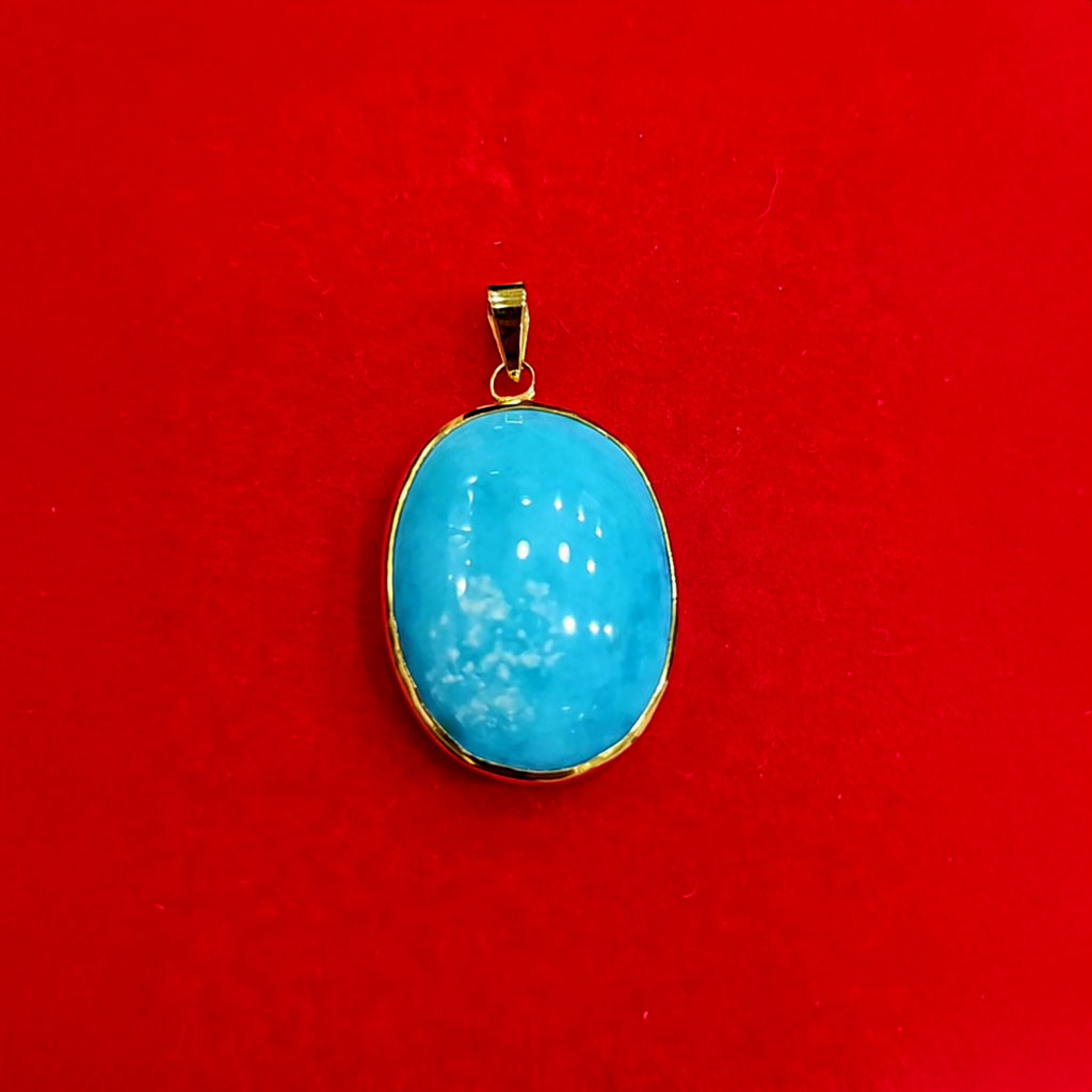 A timeless piece of elegance — Turquoise framed in gold with a sacred verse inside.